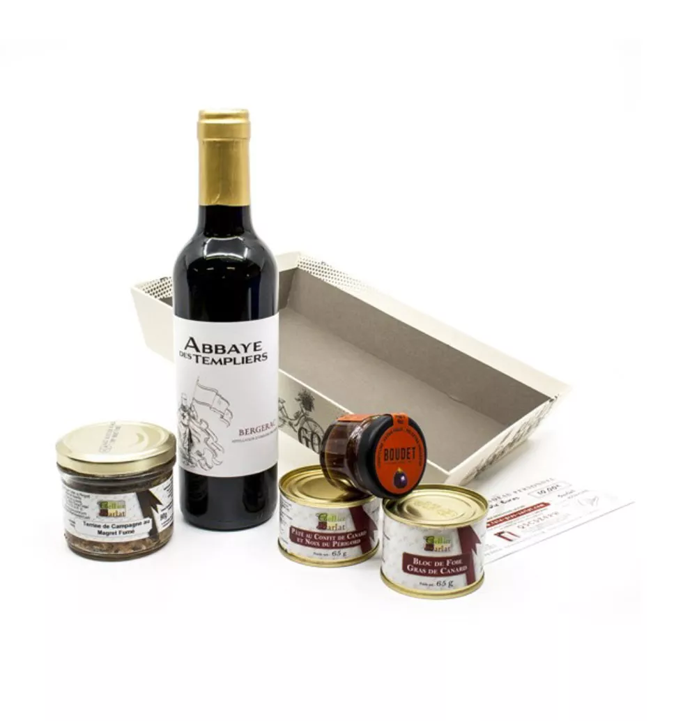 Looking for a gift that screams elegance and sophistication? Look no further! This Elegant Gift Box of Delicious Treats has it all – from the exquisite Abbaye des Templiers sweet white wine to the decadent block of duck foie gras. It's a gift that will leave a lasting impression and make any occasion extra special.