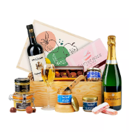 This gift box is a treasure trove of French culinary delights! The Reims pink biscuits are delicate and delicious, the dark and milk chocolates are a chocolate lover's dream, and the champagne and red wine are perfect for celebrating any occasion. A truly delightful experience from start to finish!