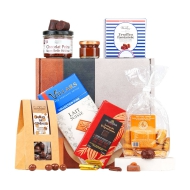 Celebrate indulgence with this thoughtfully curated chocolate ensemble, featuring nine decadent chocolates, fragrant shortbread with chocolate chips and orange peel, and a premium Villars Swiss milk chocolate bar. A mini jar of hazelnut spread and a Pear Belle Hélène–style dessert cream offer luxurious richness. The Valrhona Grand Cru starter kit introduces refined tasting squares, paired with milk chocolate–coated cereal pearls and classic fancy truffles for added delight. Everything arrives beautifully nestled inside an elegant square box adorned with gold details.